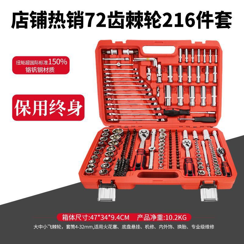 delixi-upgraded 72-tooth curved handle car repair 216-piece set