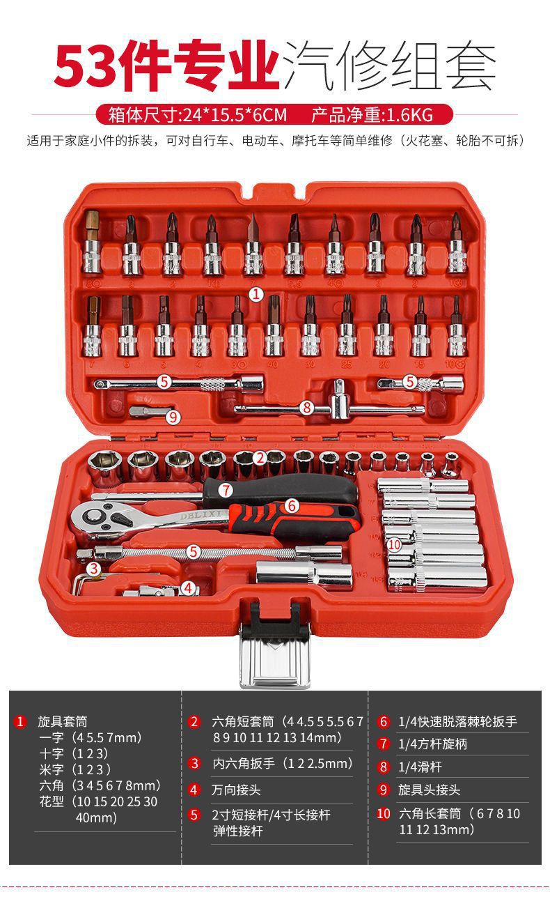 upgrade 72-tooth curved handle car repair 44-piece set