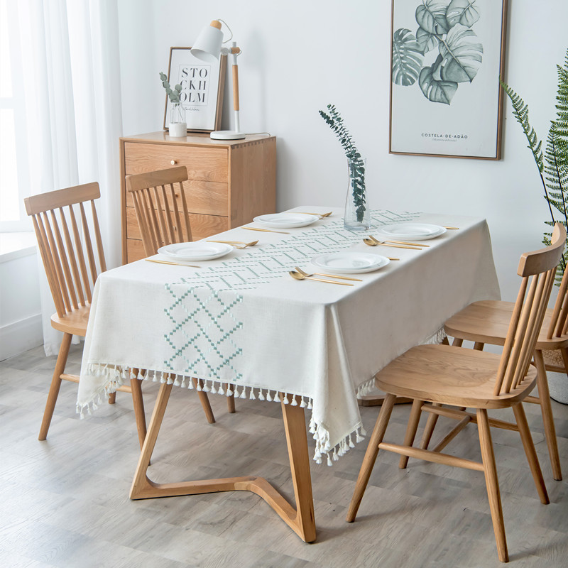Amazon New Cotton Linen Tablecloth Nordic Instagram Style Embroidery Tassel Table Cloth Tea Table Tablecloth Wholesale
