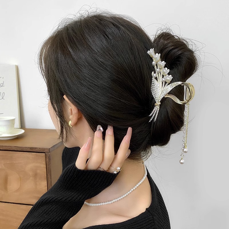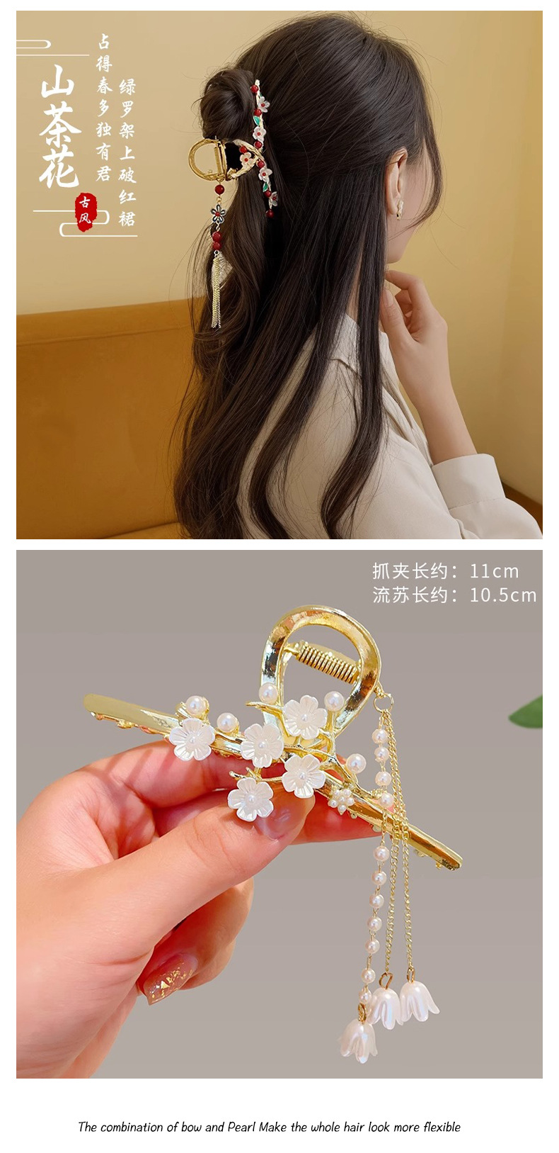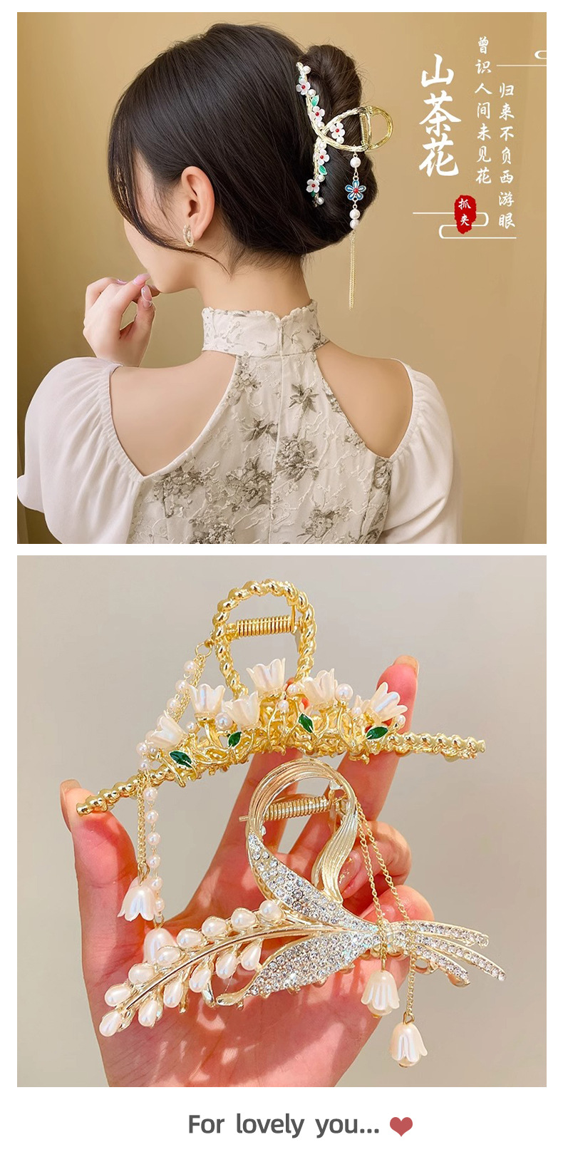 ♥❤4# twist vine pearl flower and word grip-gold❥❣♂