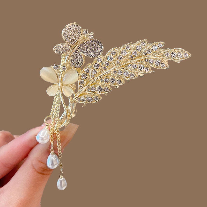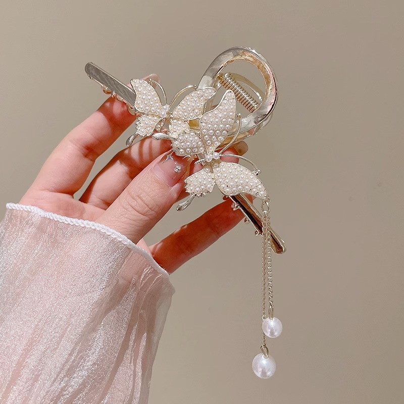 ♥❤l# double butterfly pearl tassel grip-gold❥❣♂