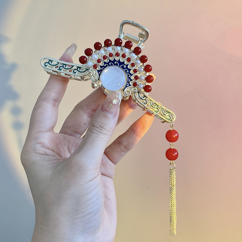♥❤8# red fan red bead tassel-gold❥❣♂