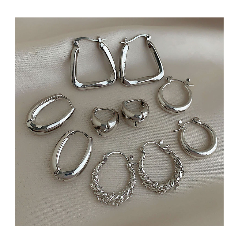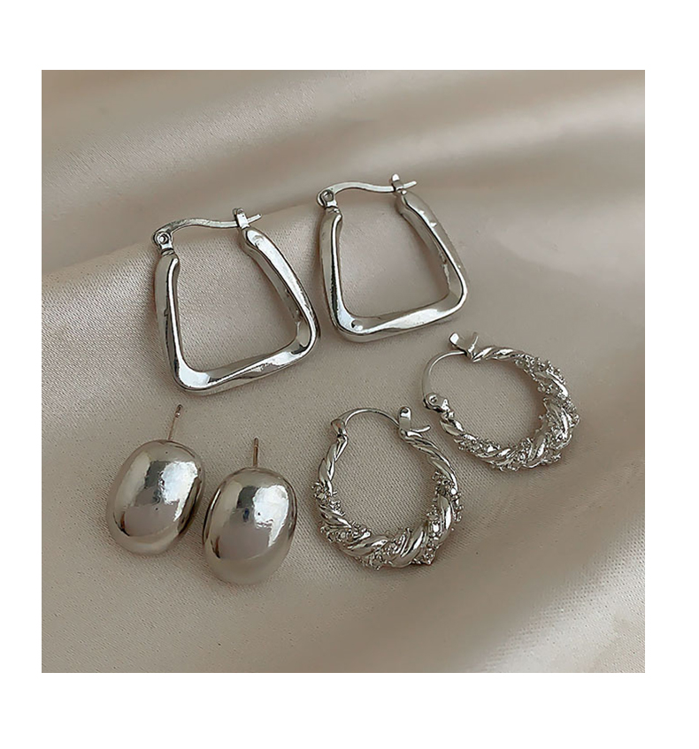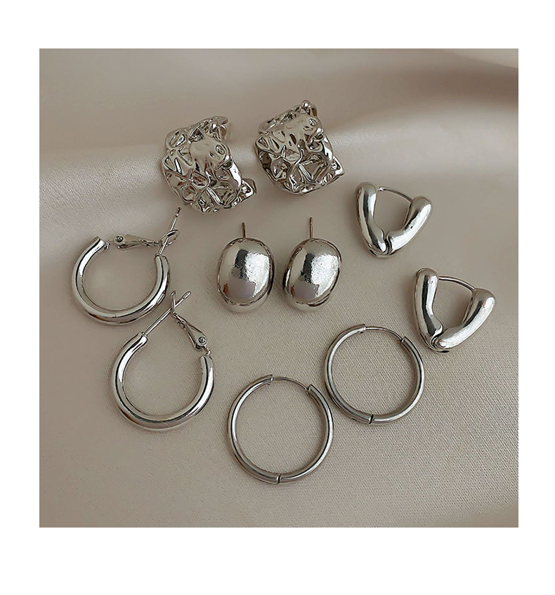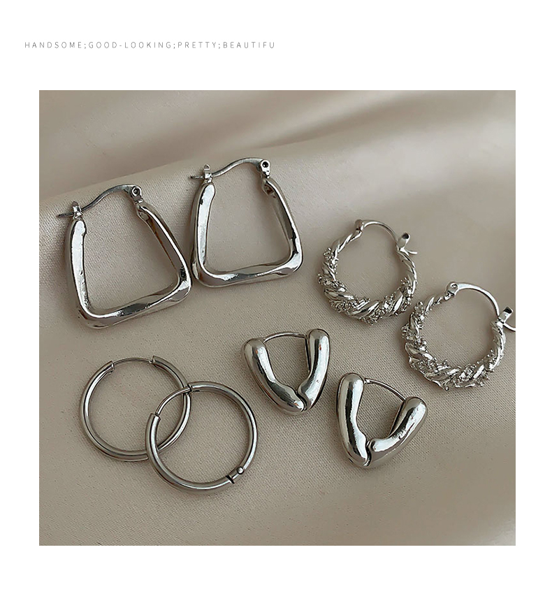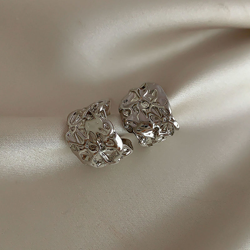 silver irregular wide face earrings-