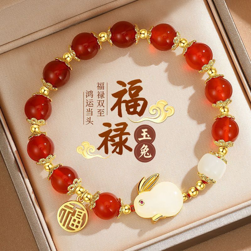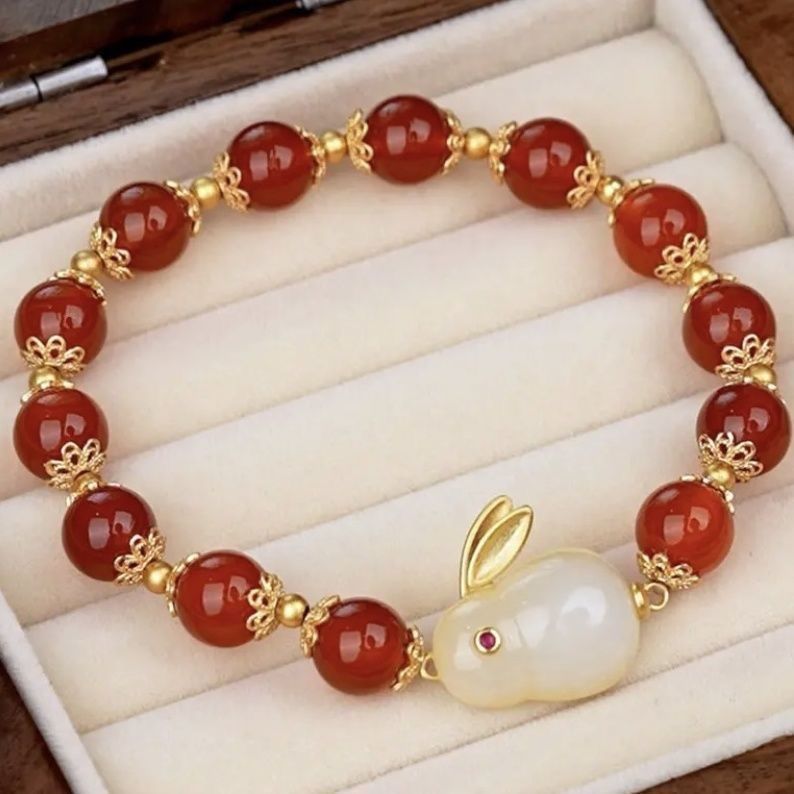red bead jade hare bracelet