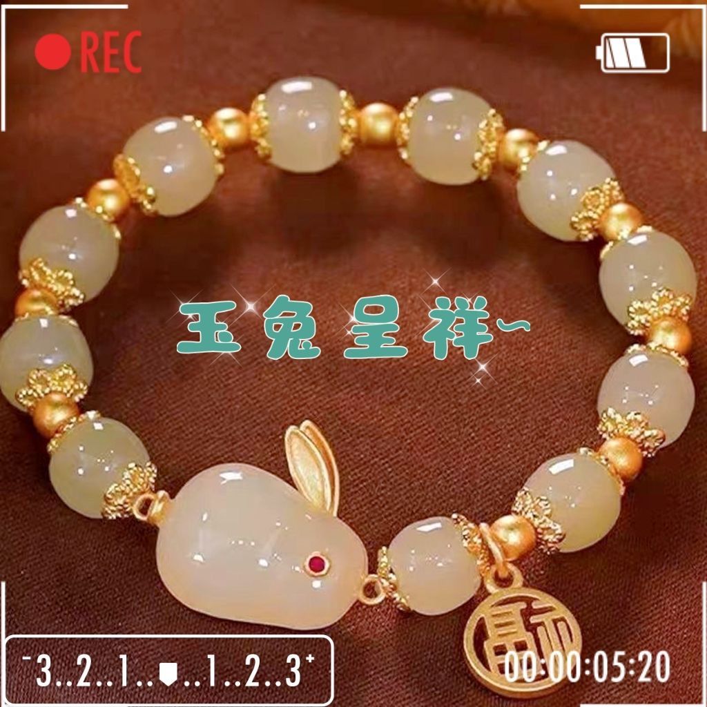 white pearl jade hare bracelet