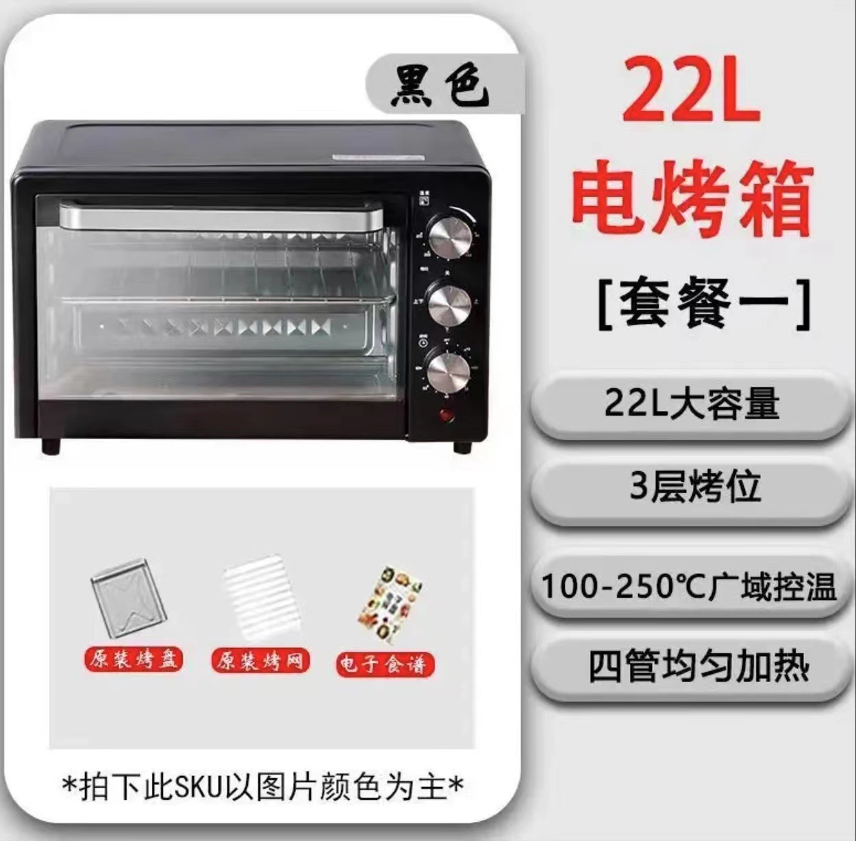 22 liters black oven + baking tray bbq grill [independent temperature control]]