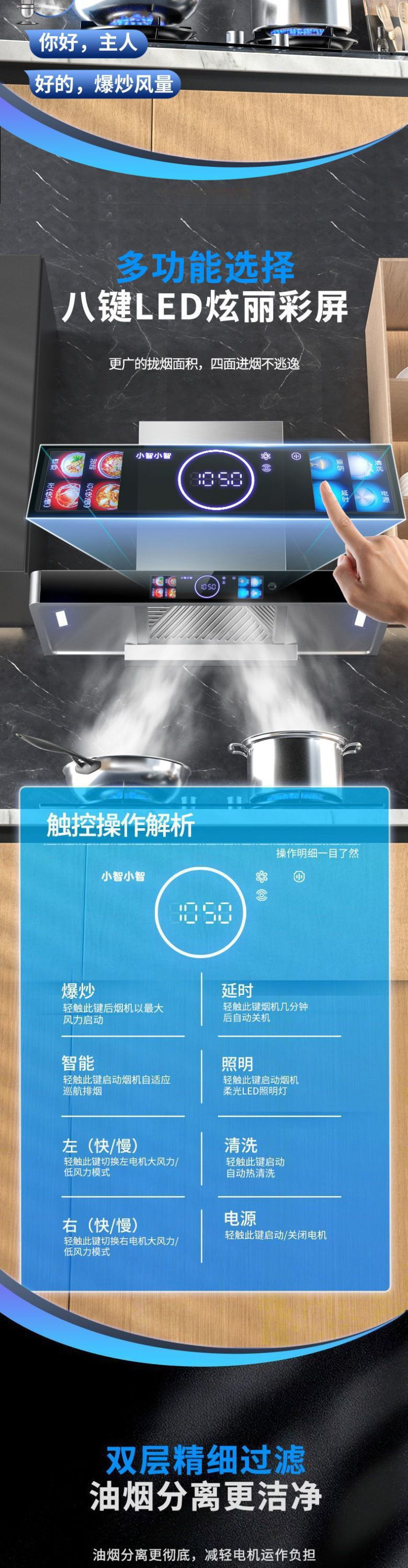 eight-key sensory cleaning voice broadcast-gas leak alarm-710mm wide + nationwide warranty