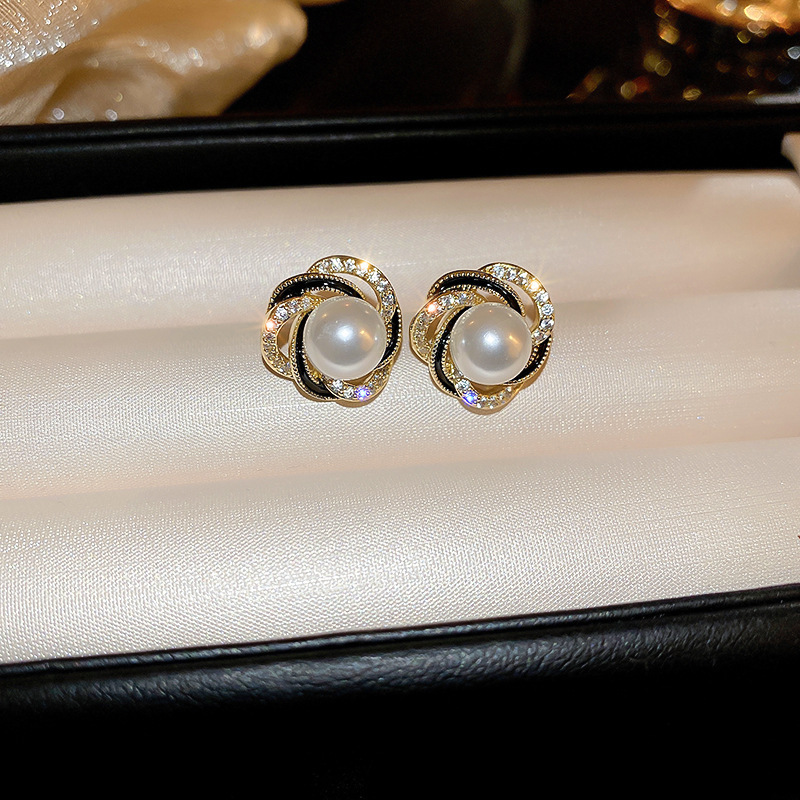 36# ear clip-black-flowers