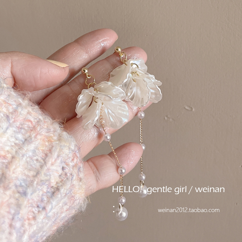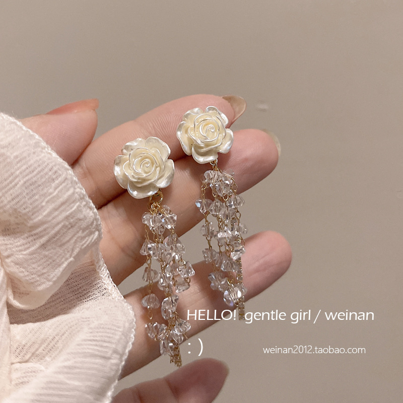 #1 [white rose tassel earrings]]