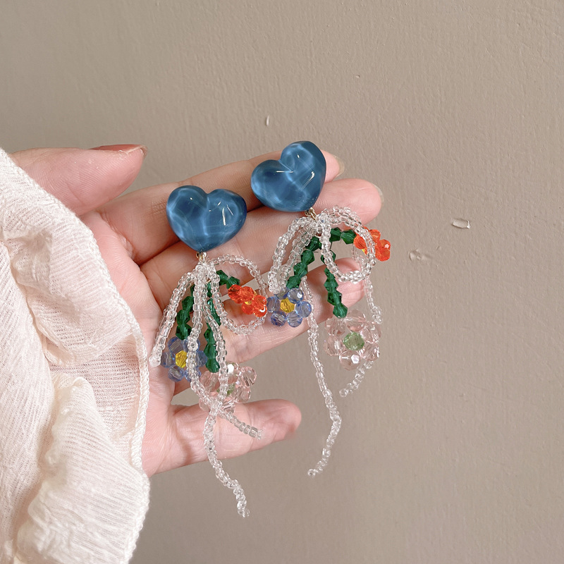 #17 [blue loving heart beaded weave ear studs]]