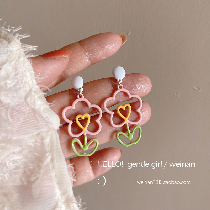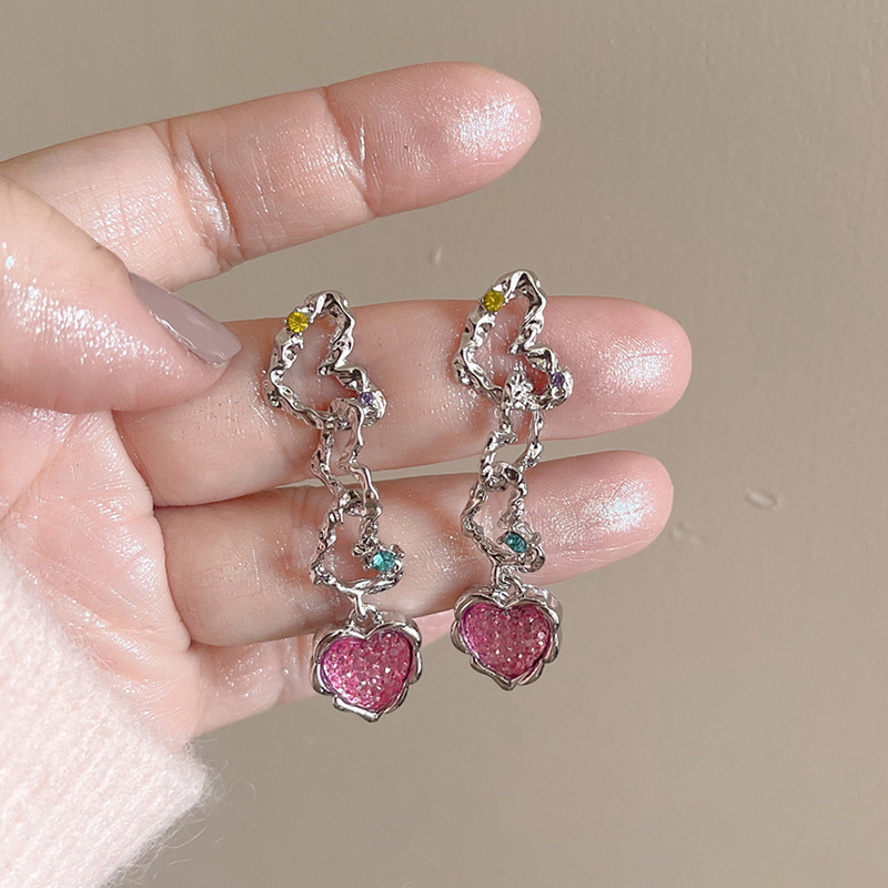 #7 models [pink love heart stud earrings]]