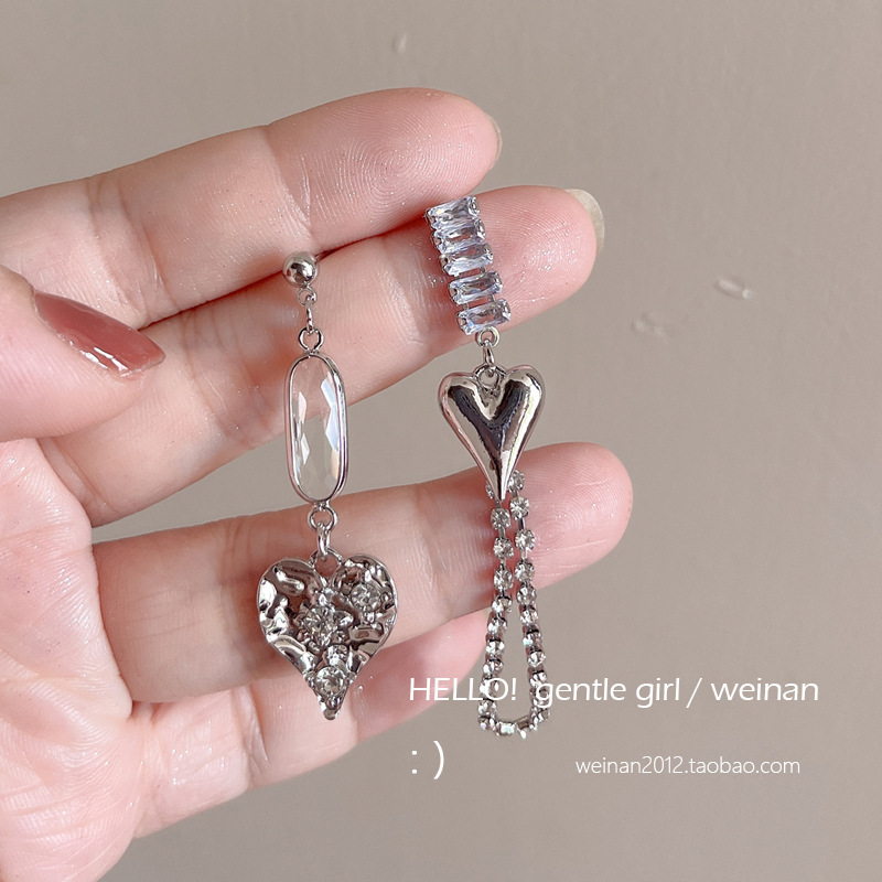 #34 models [silver asymmetric love heart earrings]]