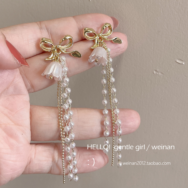 #54 models [pearl tassel earrings]]