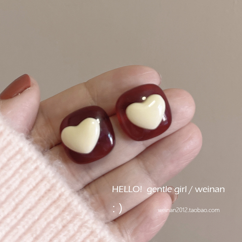 #31 [wine red square stud earrings]]