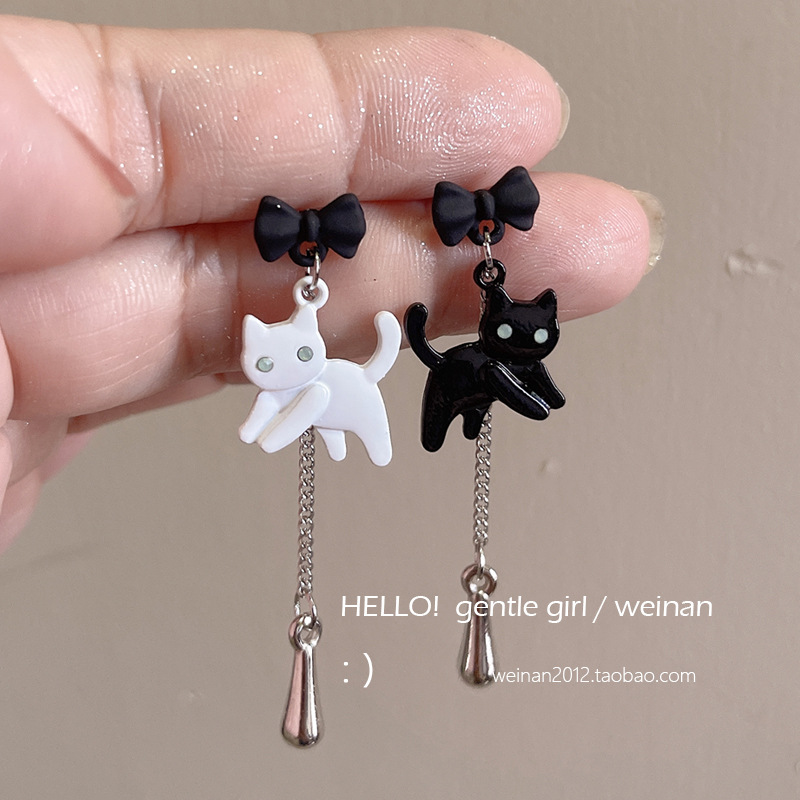 #36 models [black and white cat earrings]]