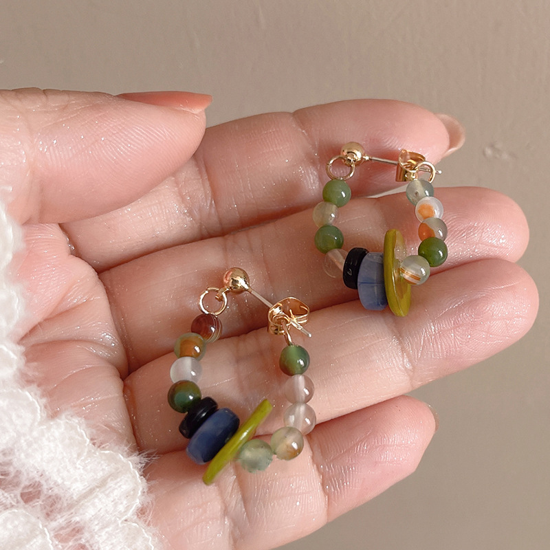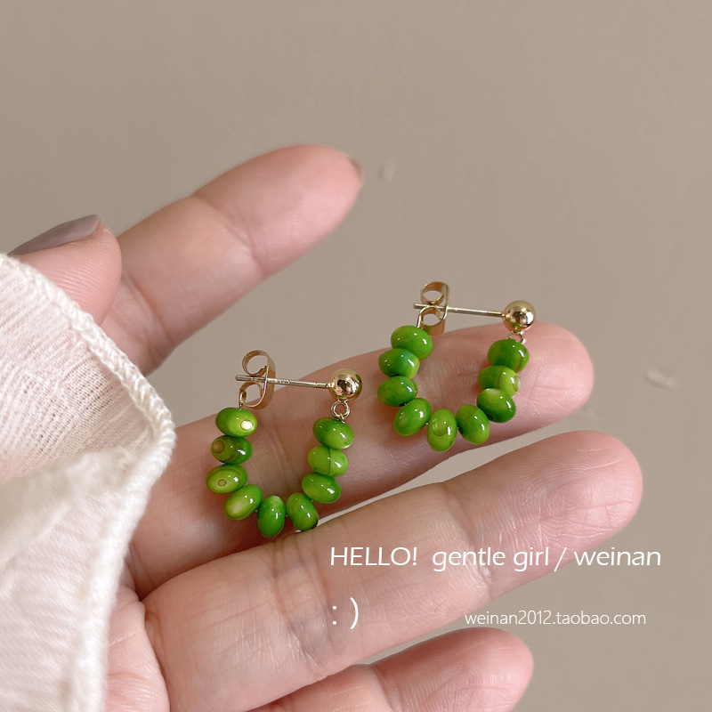 #16 [colorful beads string green button earrings]]