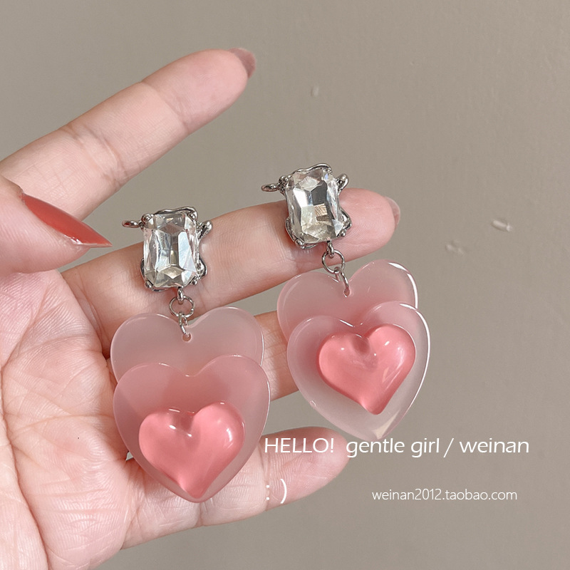 #10 models [pink transparent love heart stud earrings]]