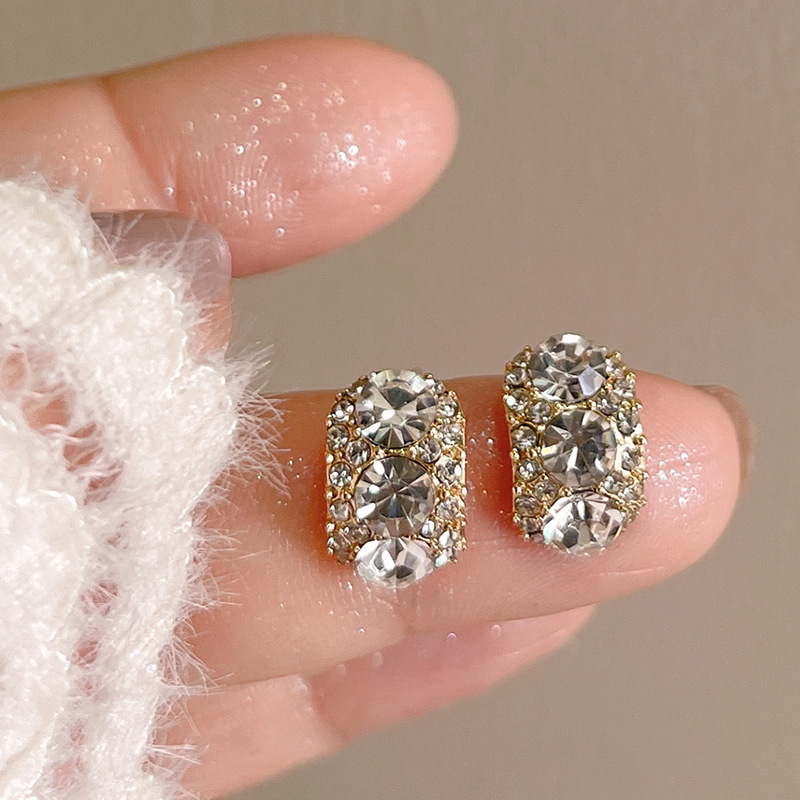 #19 models [retro 3 rhinestone ear studs]]