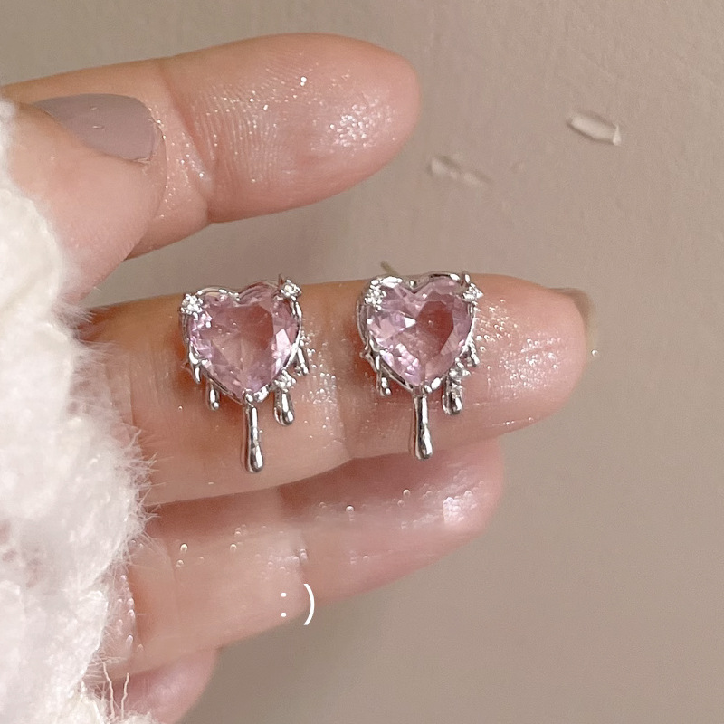 #25 models [colorful purple love heart stud earrings]]