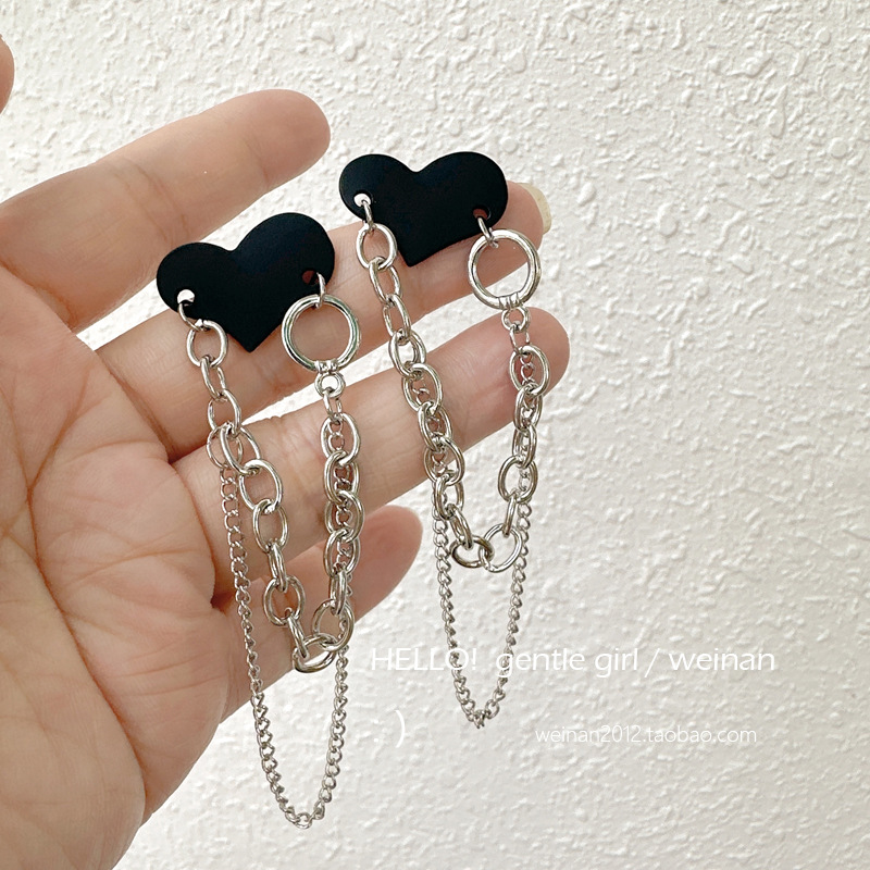 #39 [black heart tassel earrings]]