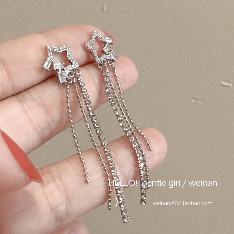 #40 [single diamond embedded star tassel ear studs]]