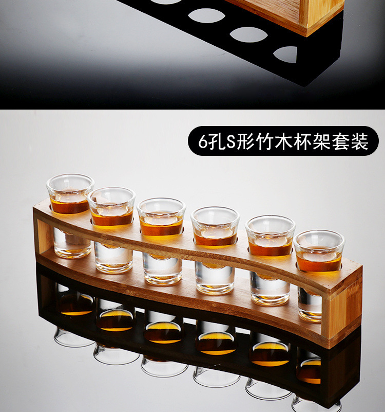 bamboo thick bottom shooter glass 30ml + bamboo s-shaped cup holder