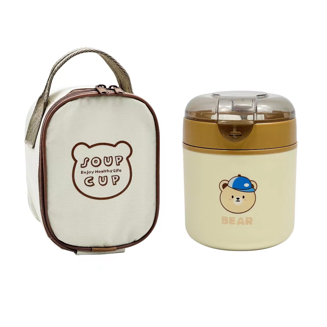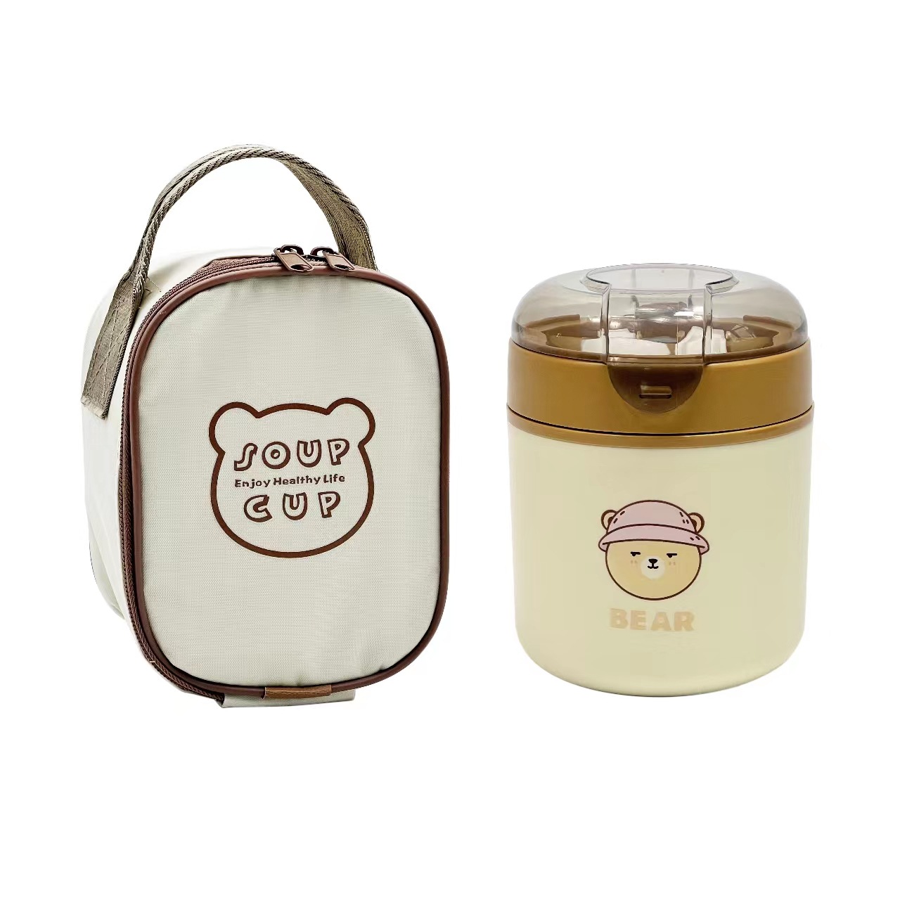 item no. 3001 le yue bear breakfast cup-brown + thermal bag