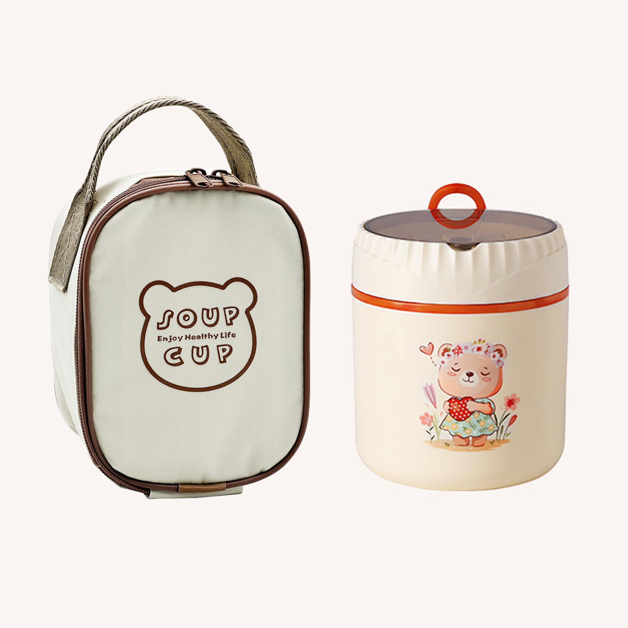item no. 3001 le yue bear breakfast cup-orange + thermal bag
