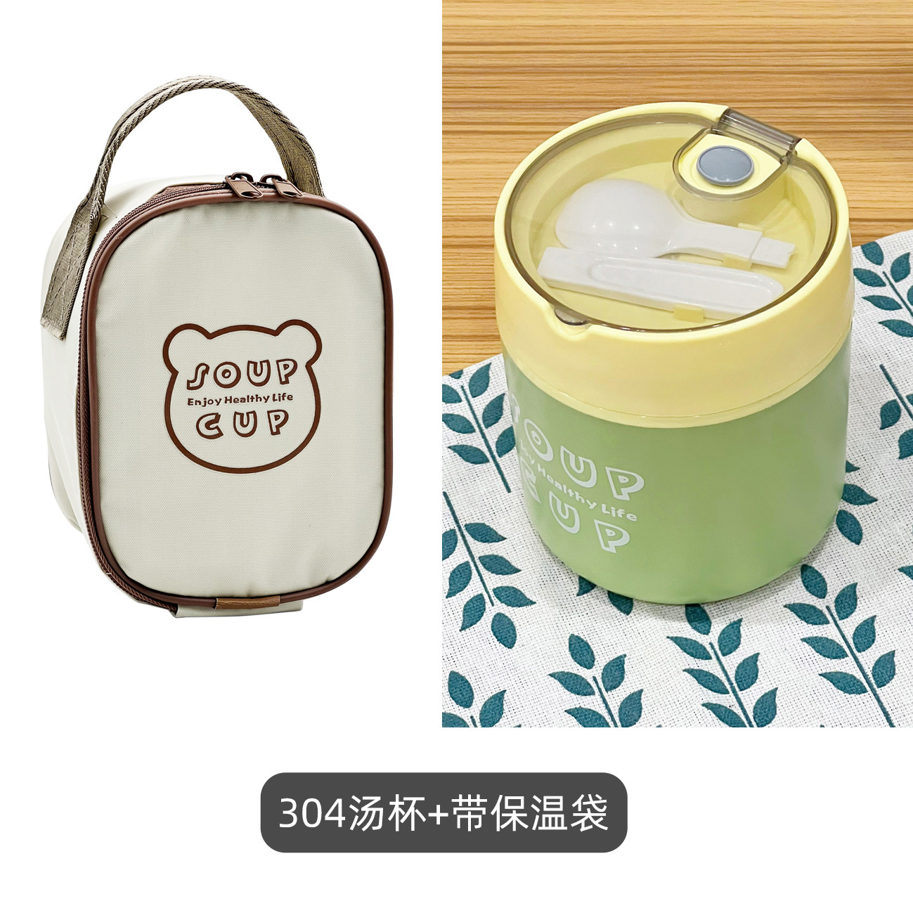 item no. 2882a morandi color flat lid soup cups fruit green + thermal bag