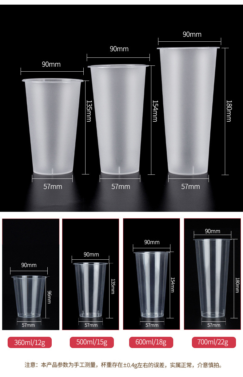 90-600ml frosted pp cup 100 pcs