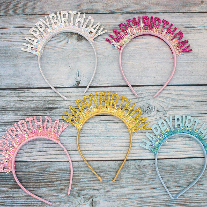 new glitter gold silk birthday headband english letters happy birthday headband party atmosphere decorative hat