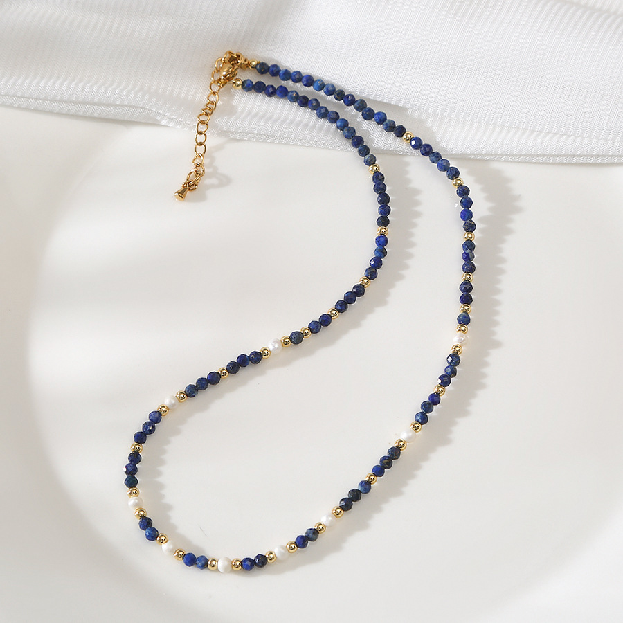faceted lapis lazuli pearl necklace