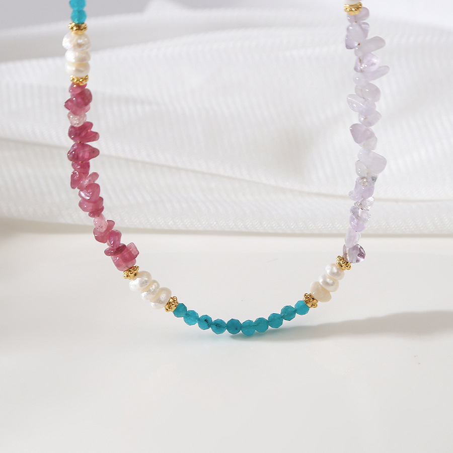 blue phosphorus gray red tourmaline green agate amethyst pearl necklace