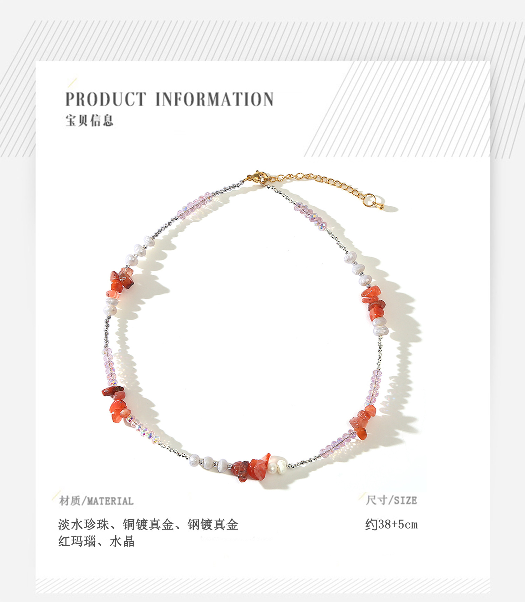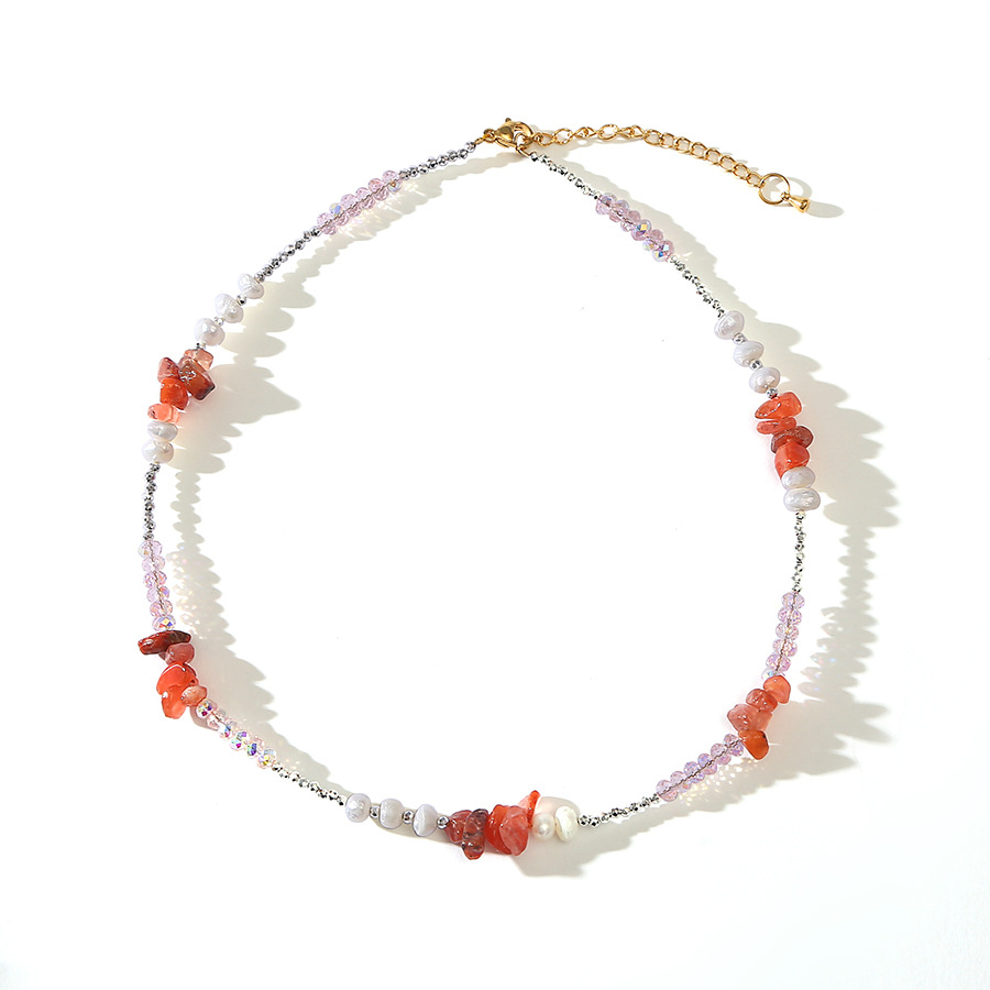 red agate crystal pearl necklace