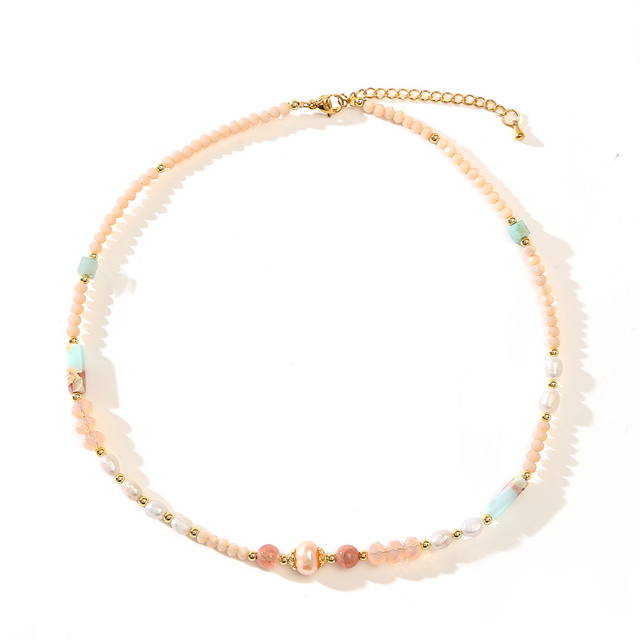 pink zircon crystal pearl necklace