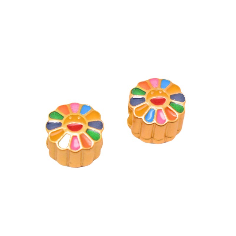 【Product Name】: Live Hot Sale New Style Matte Gold Accessories Large Hole Sunflower Round Beads Multicolored Flower Smile Face Badge Bracelet Pendant Hanger