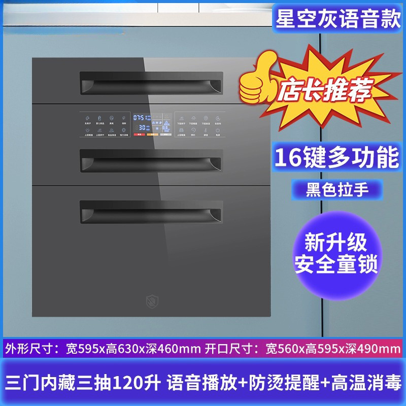 [new] starry sky gray three doors 120l +16 functions + voice anti-scald child lock
