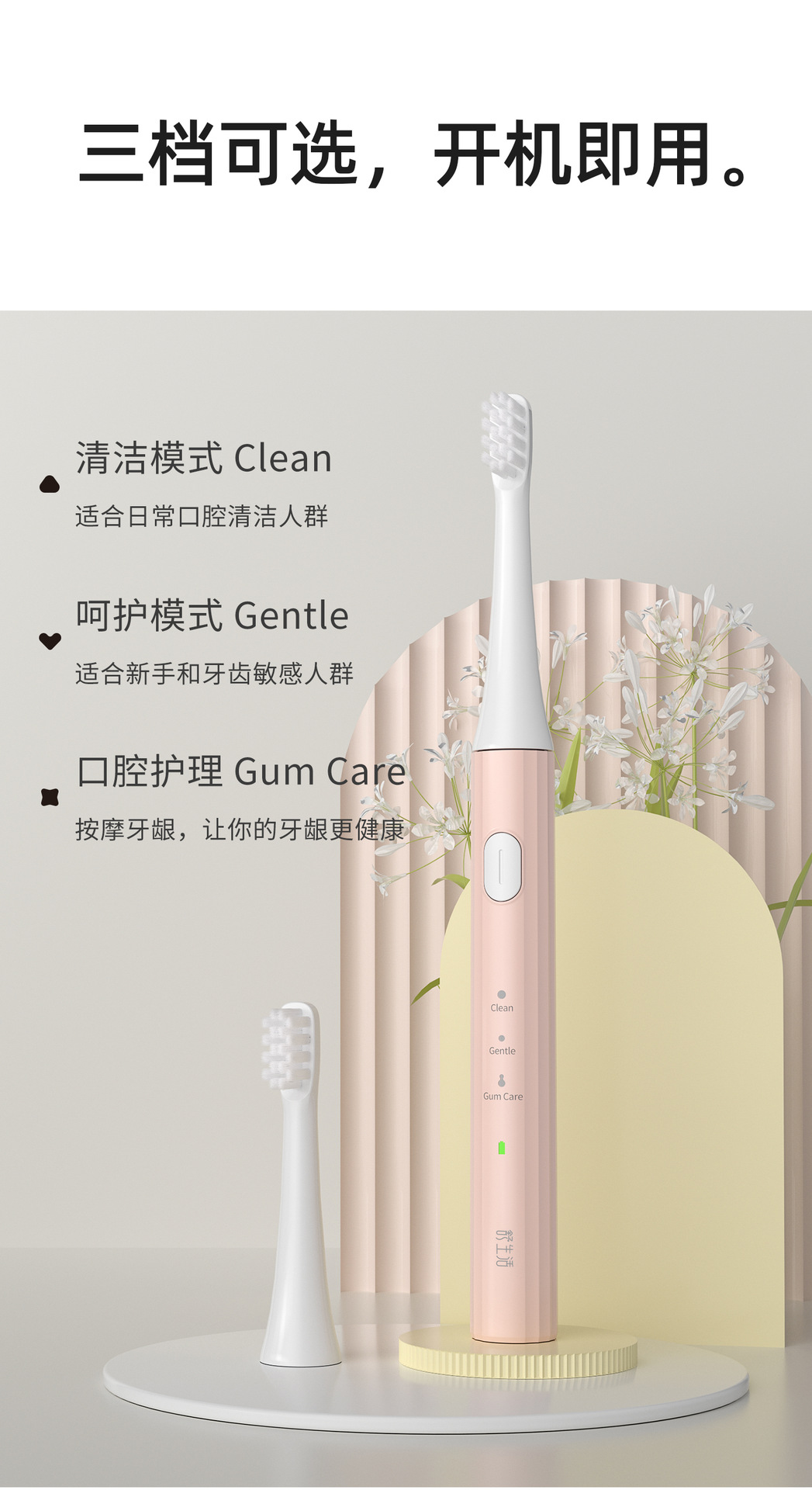 entry-level sonic toothbrush white【 with 2 bruch head]]