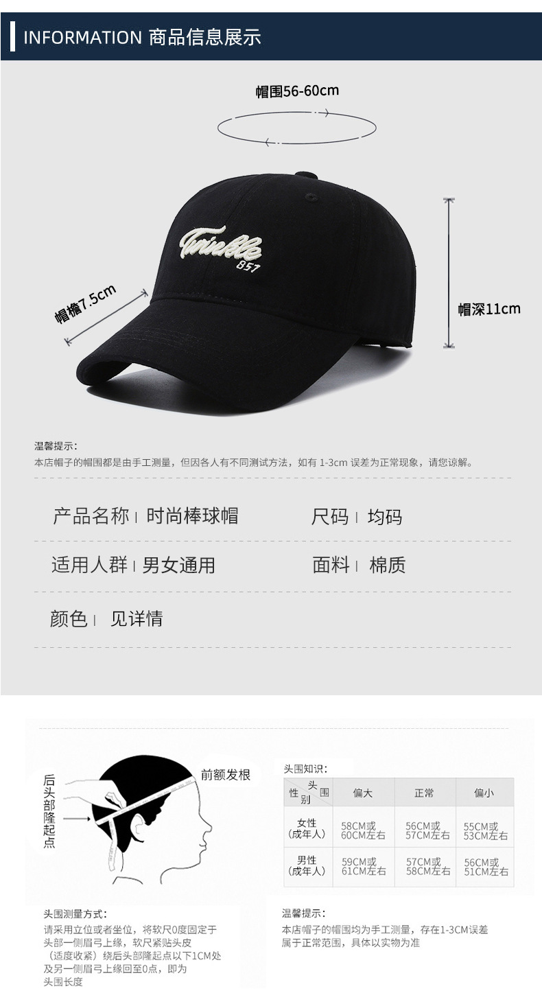 korean style baseball cap women's outdoor all-matching white sun hat couple peaked cap ins men and women