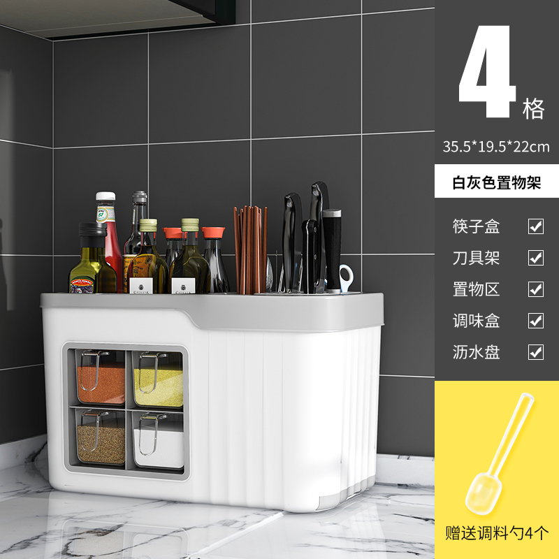 small size 4 grid condiment dispenser [gray white] get 4 seasoning spoon free⭐multifunctional spice rack