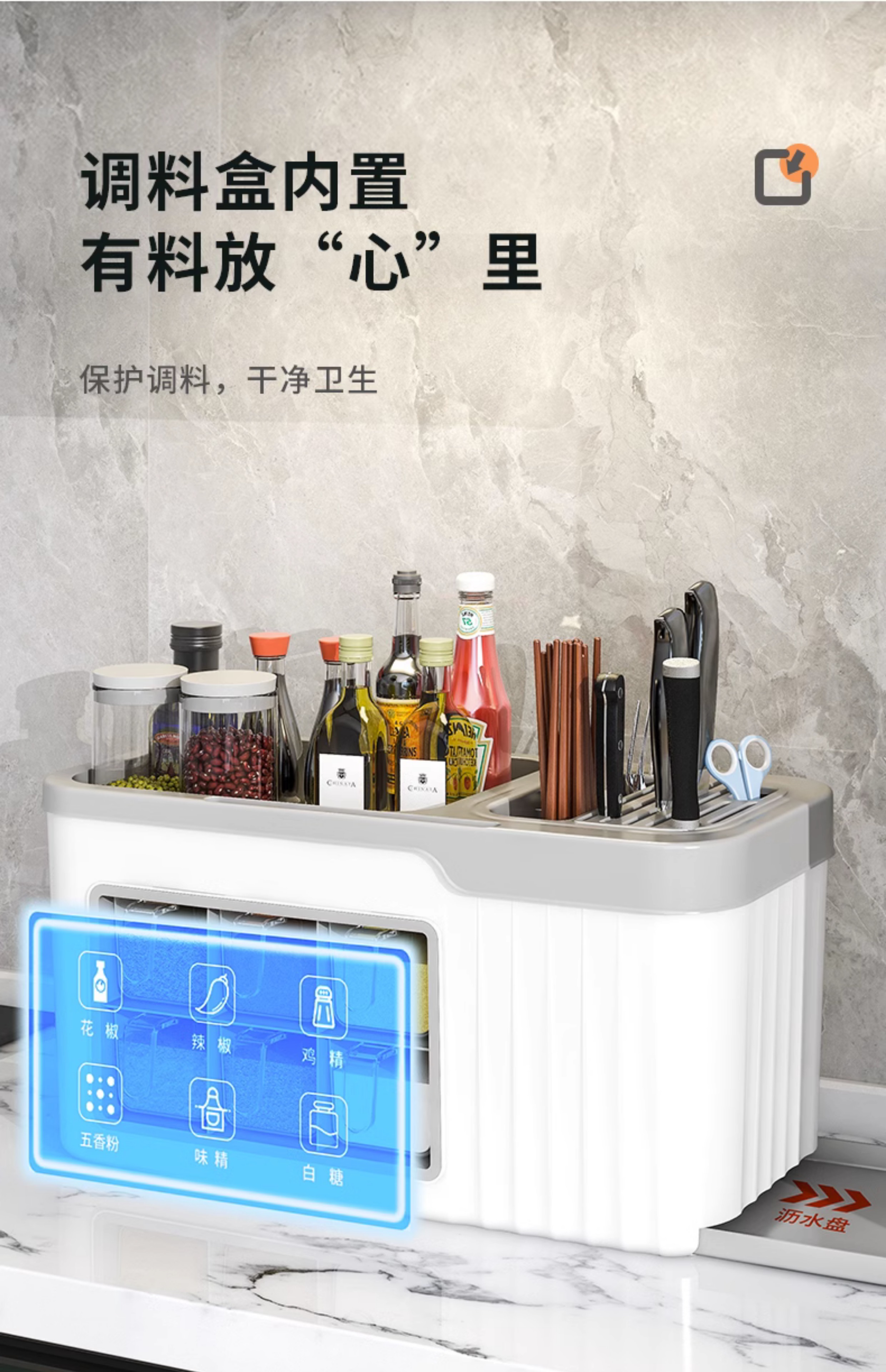 6 grid condiment dispenser [gray and white]]❤wall-mounted/table-mounted dual-use