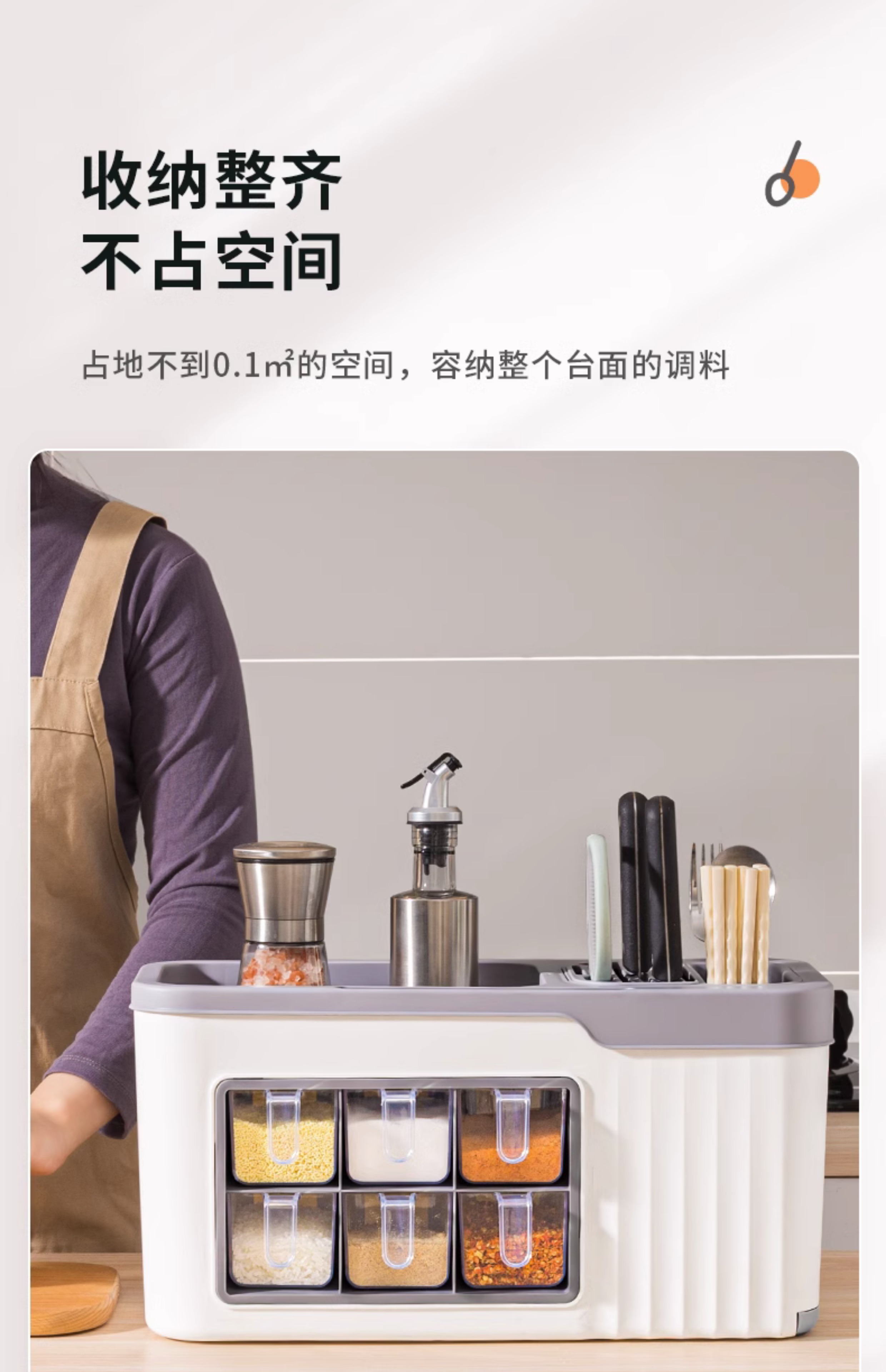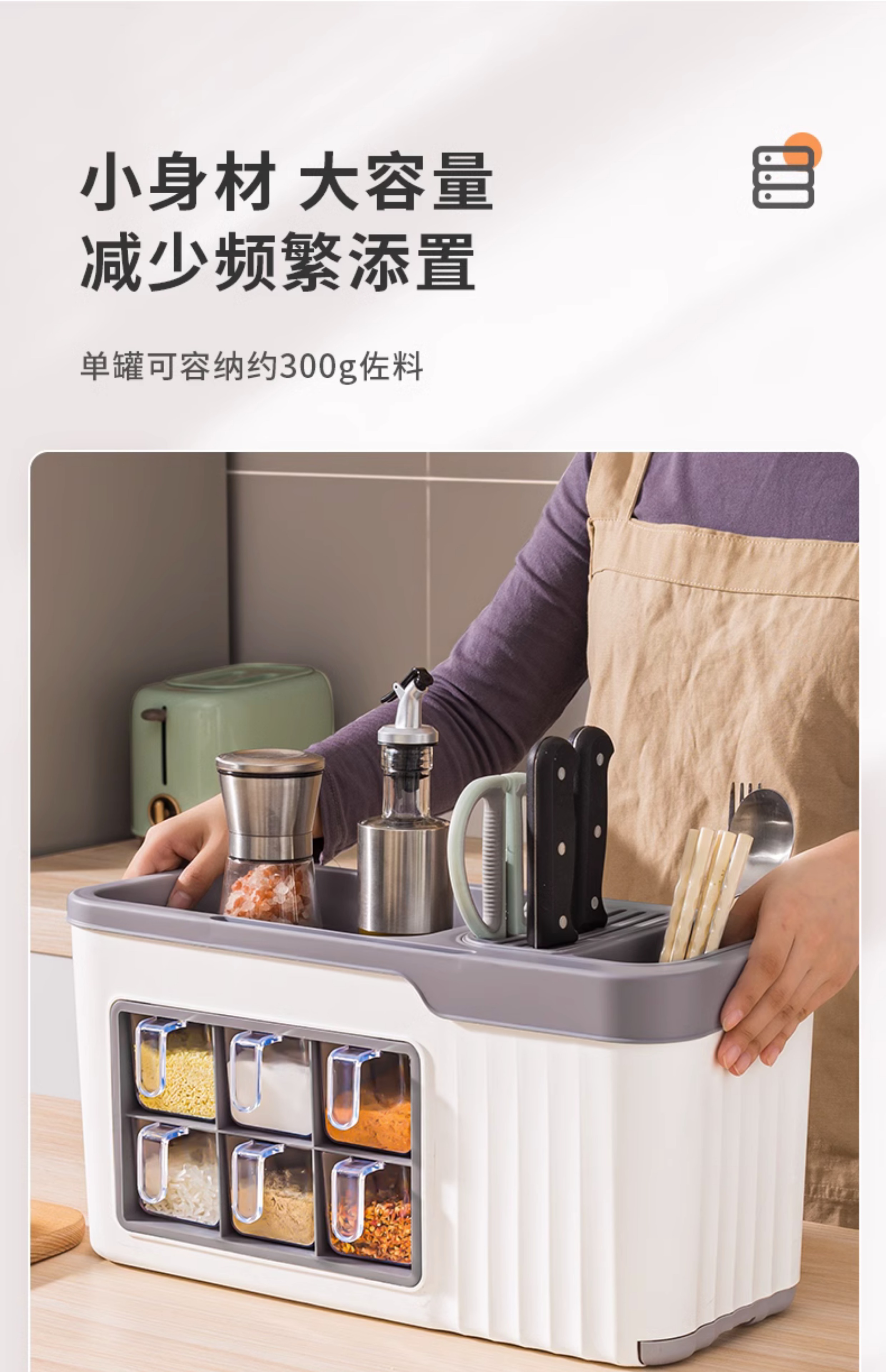 6 grid condiment dispenser [gray white] get 6 seasoning spoon free⭐multifunctional spice rack