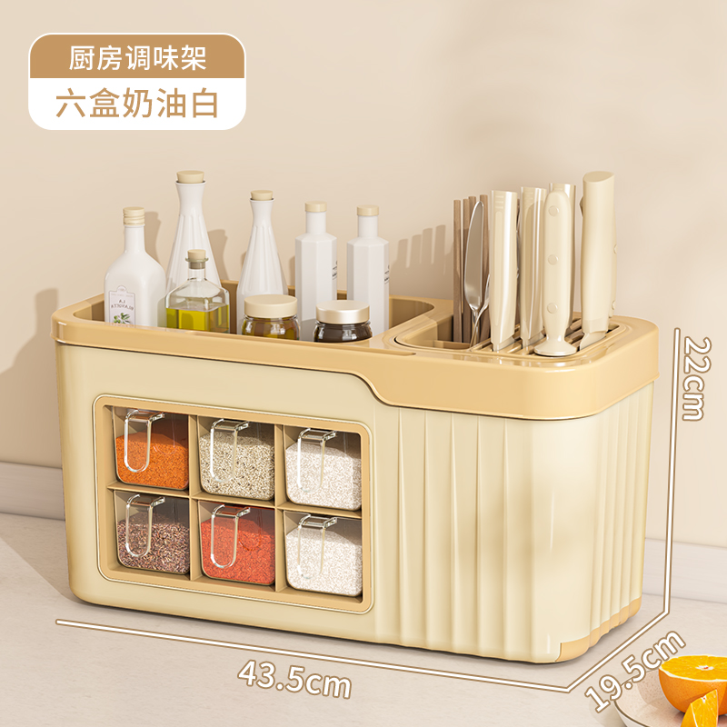 large 6 grid condiment dispenser [cream white] get 6 seasoning spoon free⭐multifunctional spice rack