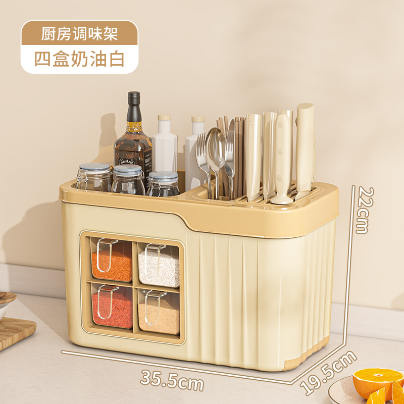 small size 4 grid condiment dispenser [cream white] get 4 seasoning spoon free⭐multifunctional spice rack