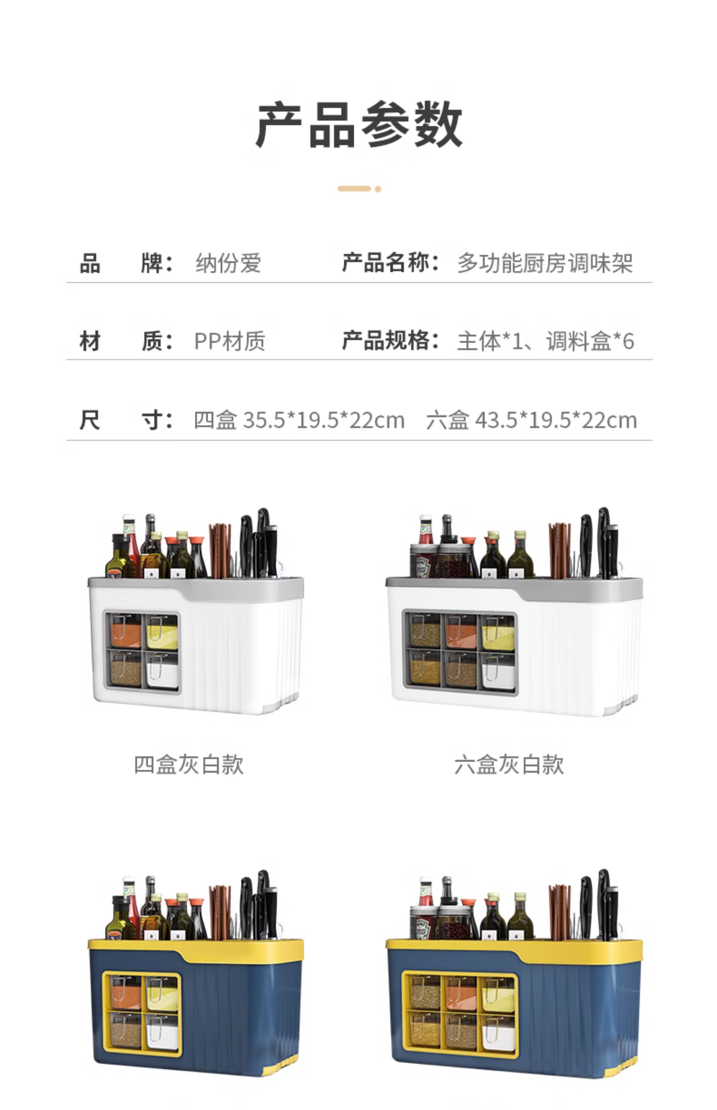small size 4 grid condiment dispenser [blue and yellow] get 4 seasoning spoon free⭐multifunctional spice rack