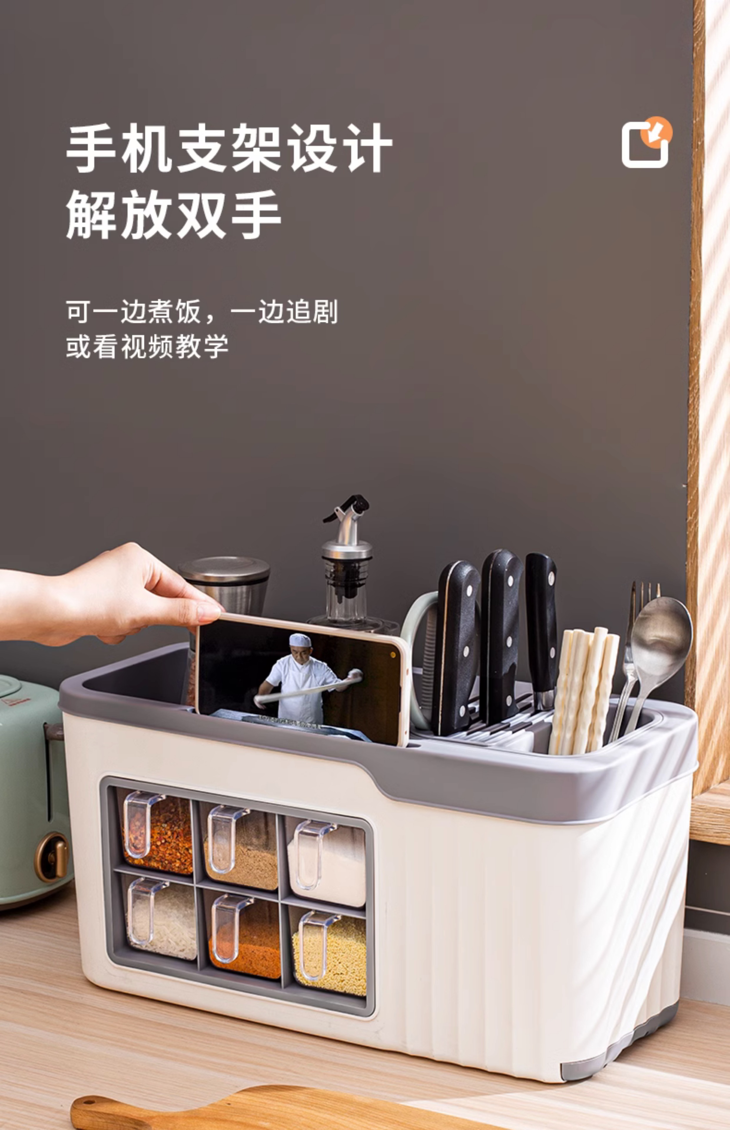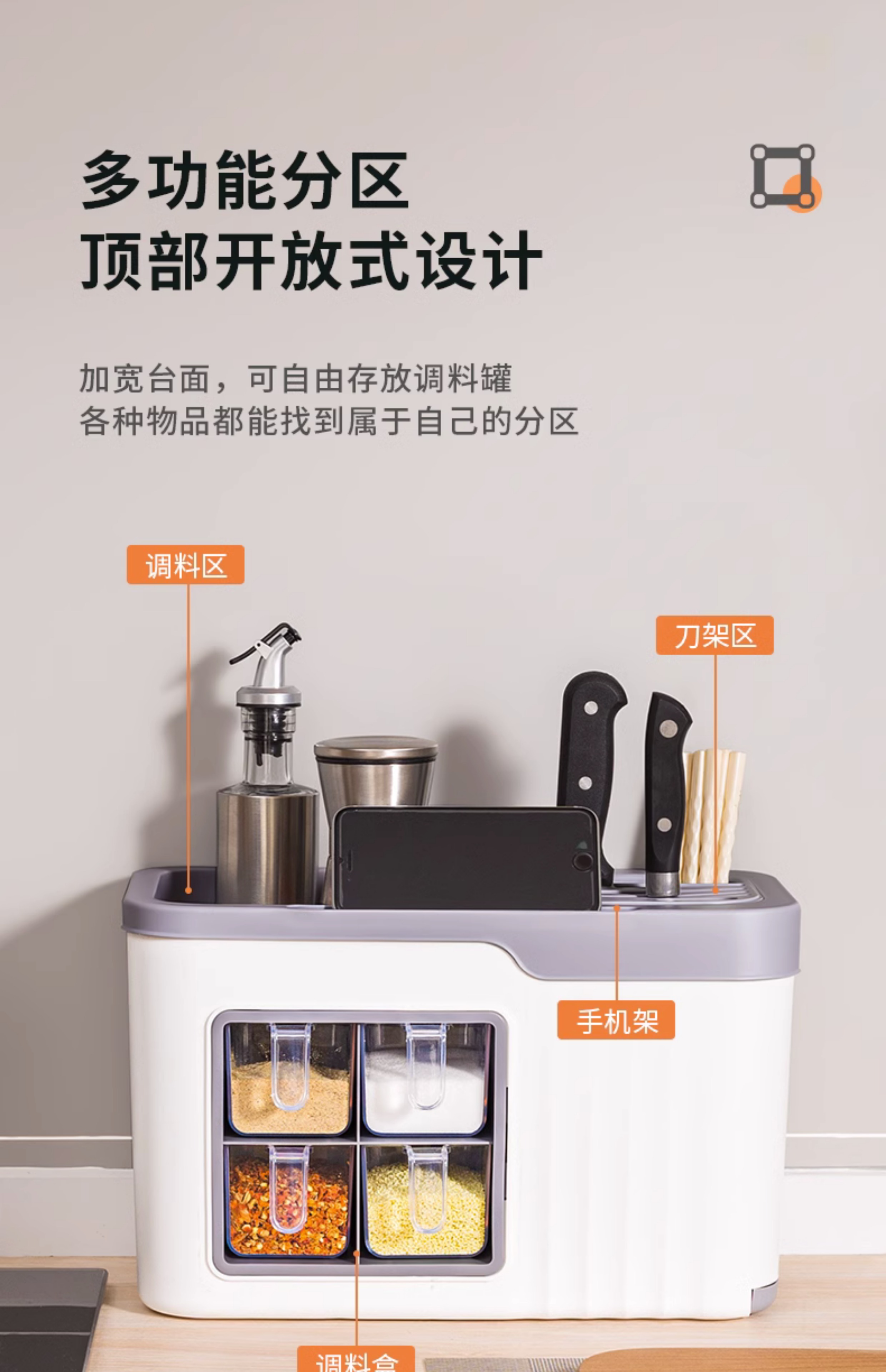 4 grid condiment dispenser [gray white] get 4 seasoning spoon free⭐multifunctional spice rack