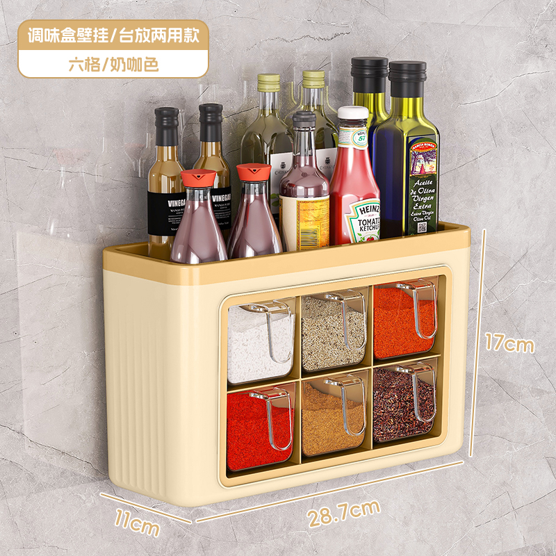 6 grid condiment dispenser [milk brown]]❤wall-mounted/table-mounted dual-use