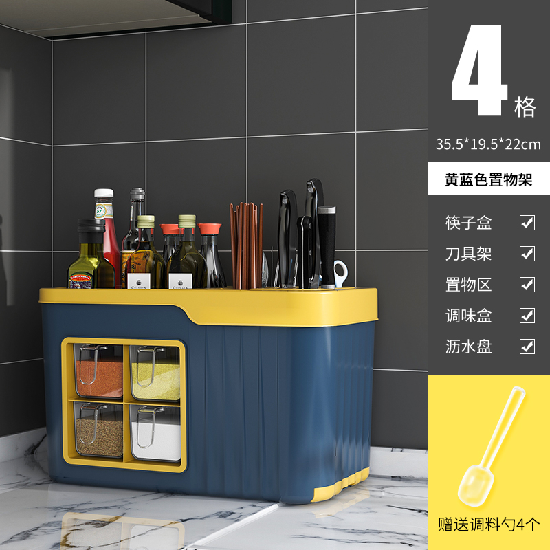 4 grid condiment dispenser [blue and yellow] get 4 seasoning spoon free⭐multifunctional spice rack