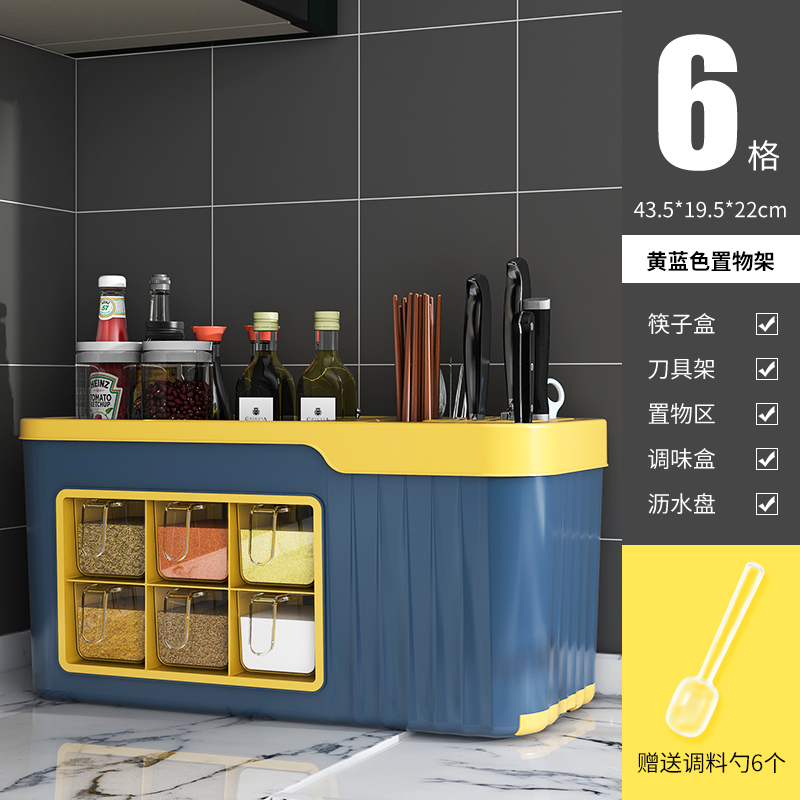 6 grid condiment dispenser [blue and yellow]]❤wall-mounted/table-mounted dual-use