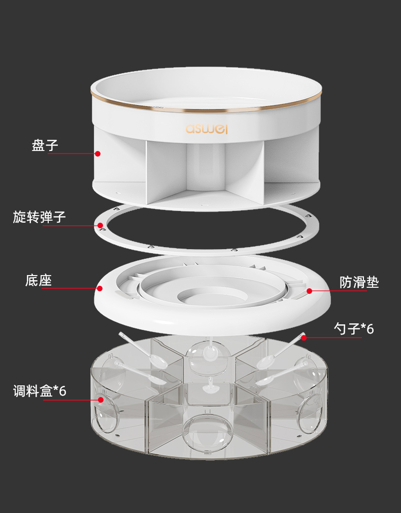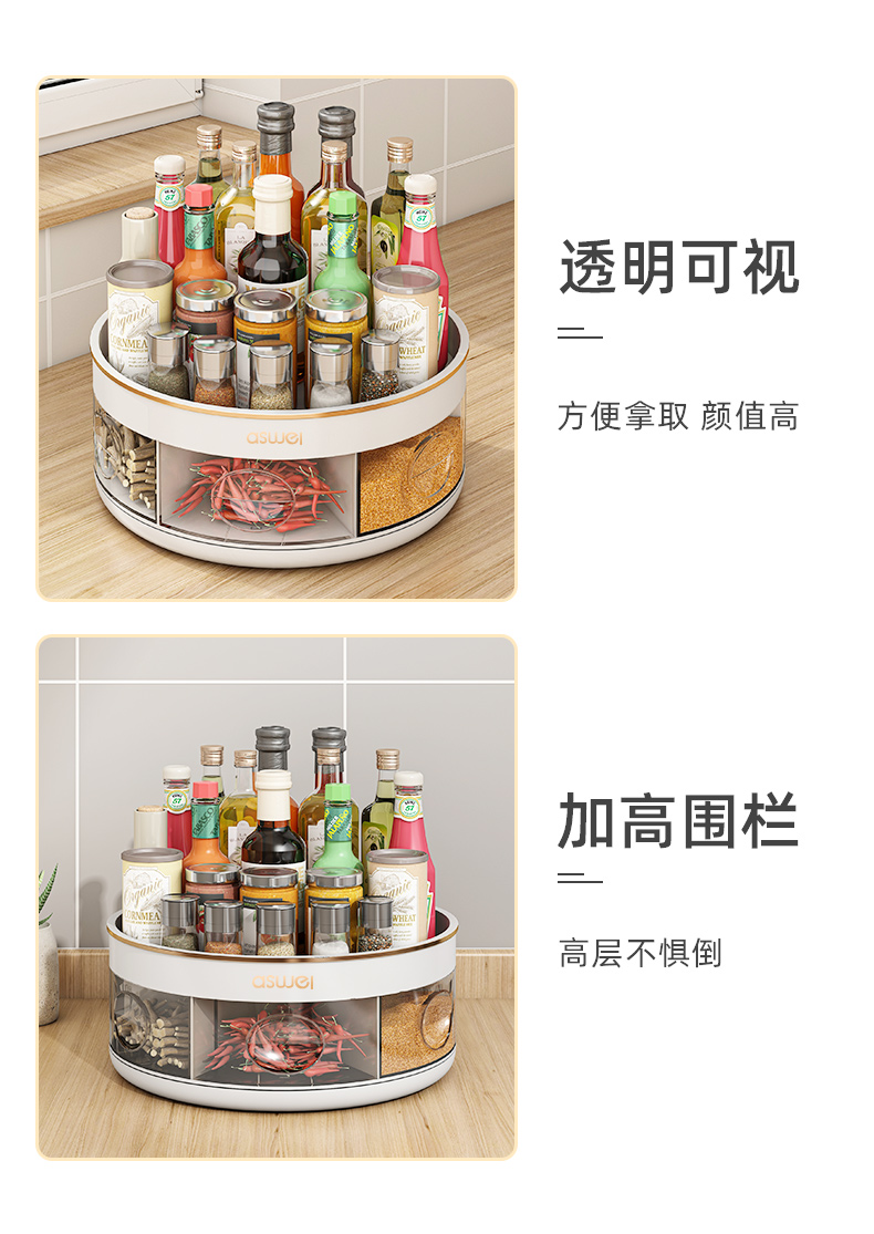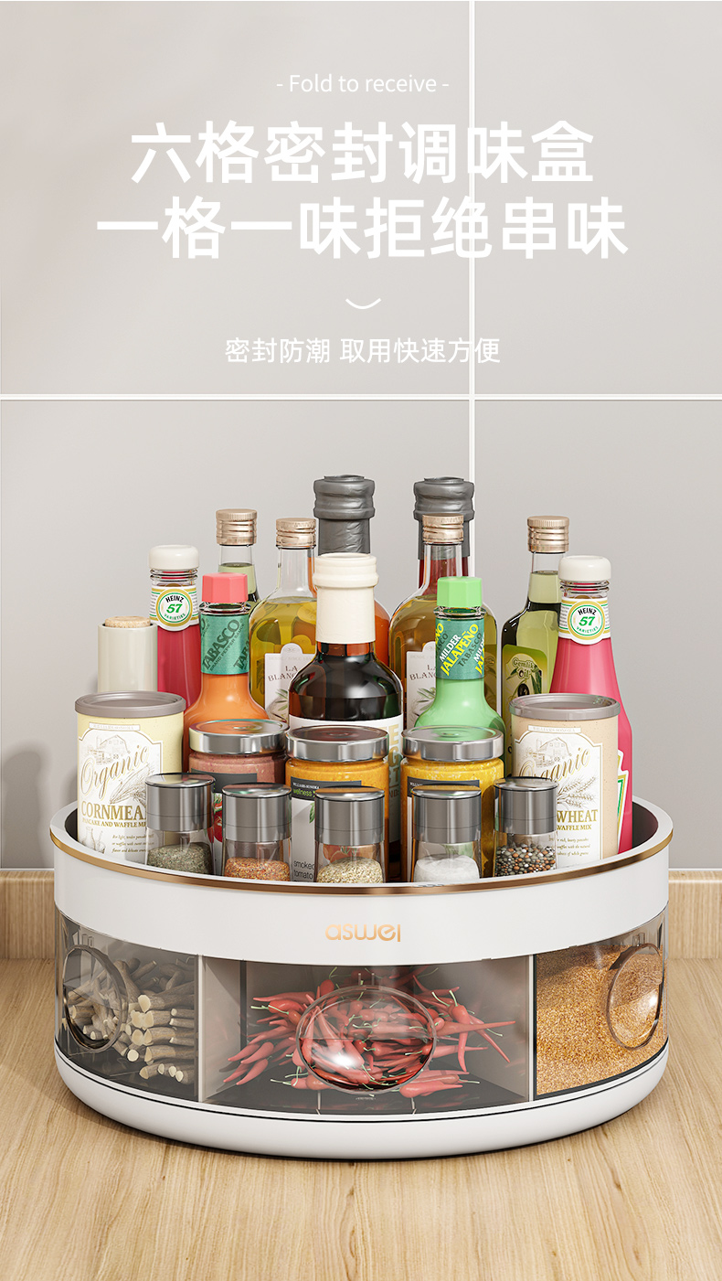 pearl white-rotating seasoning box (divided storage/integrated multi-grid)
